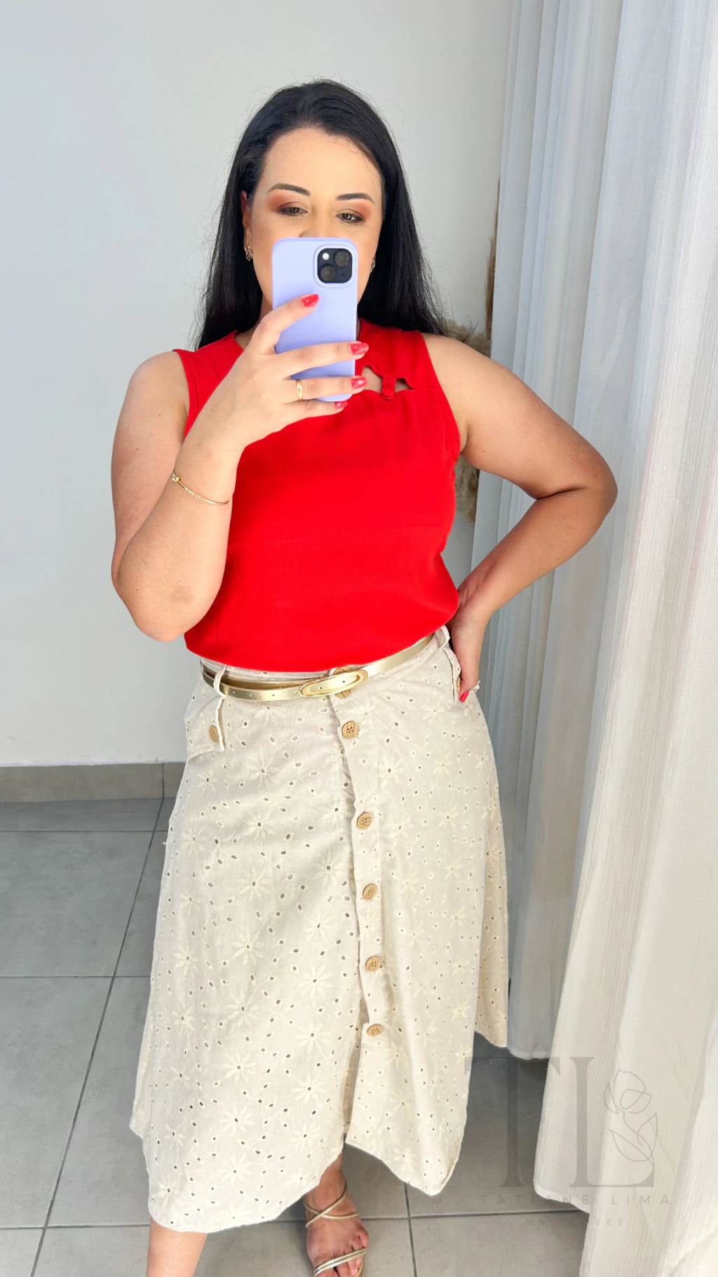 Aposte na blusa perfeita para um visual fresco e cheio de estilo! Confeccionada em viscolinho, um tecido que une a leveza da viscose e a sofisticação do linho, esta blusa de alça larga oferece um conforto incomparável. O detalhe de botões na lateral adiciona um toque sutil e moderno, elevando a peça para diversas ocasiões.