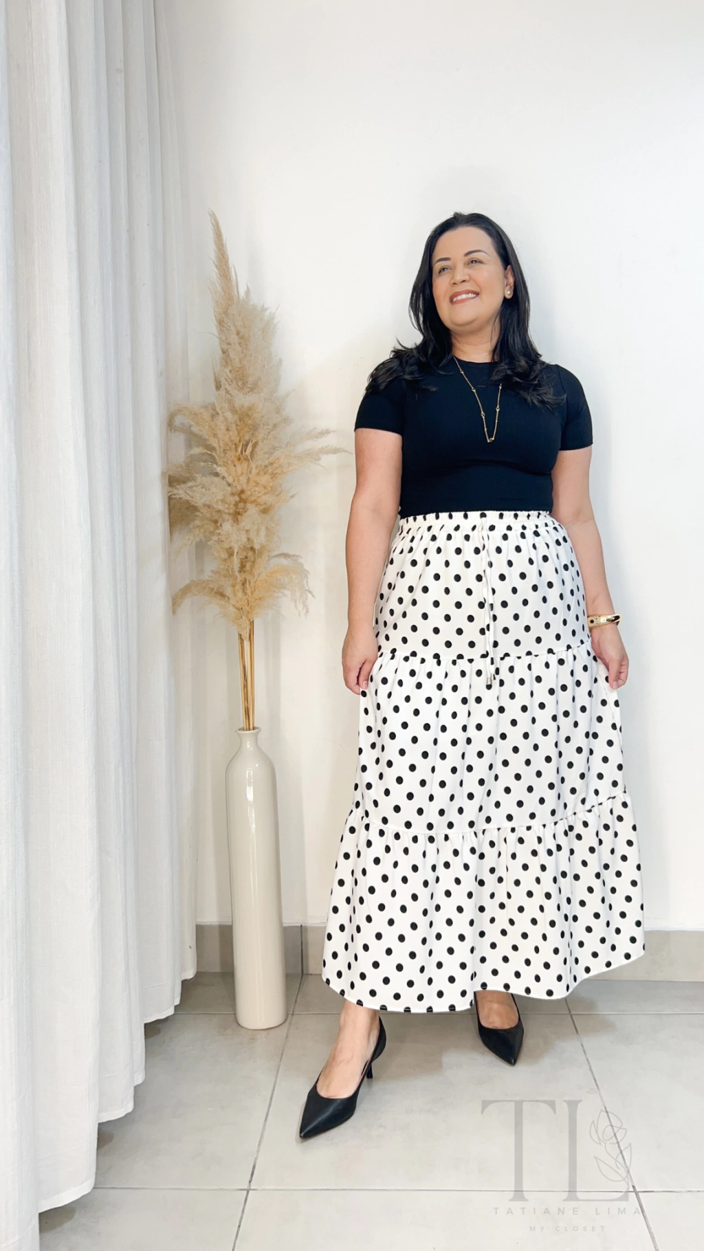 O destaque fica por conta da sua estampa clássica de Poá (bolas) em preto e branco, uma combinação P&B atemporal que garante infinitas possibilidades de combinações.